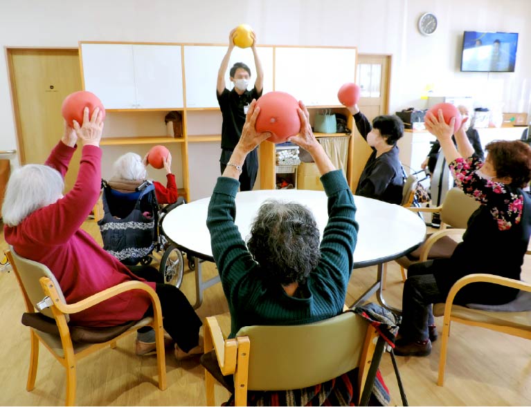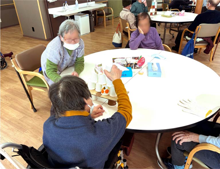 体力づくりだけでなく、日常生活動作(タオル干し・たたみ・収納までの一連動作や和室の掃除機掛け)、園芸等も行っています。